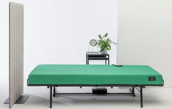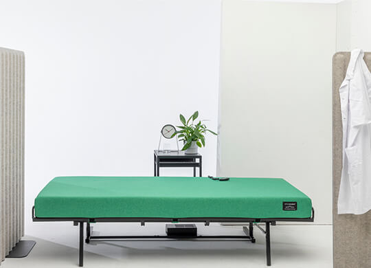 Het powernapbed is een uitstekende oplossing bij ruimtegebrek. Het bed is namelijk in een simpele handbeweging inklapbaar. In opgeklapte stand neemt het bed slechts 1 m2 in beslag.